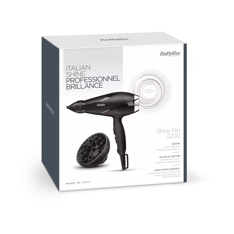 AC profimootor. Ioonhooldus. 2 kiiruse / 2 temperatuuri astet, jahe õhk. Kitsas õhusuunaja otsik: 6 mm. Difuuser. Eemaldatav filter. Riputusaas. Valmistatud Itaalias