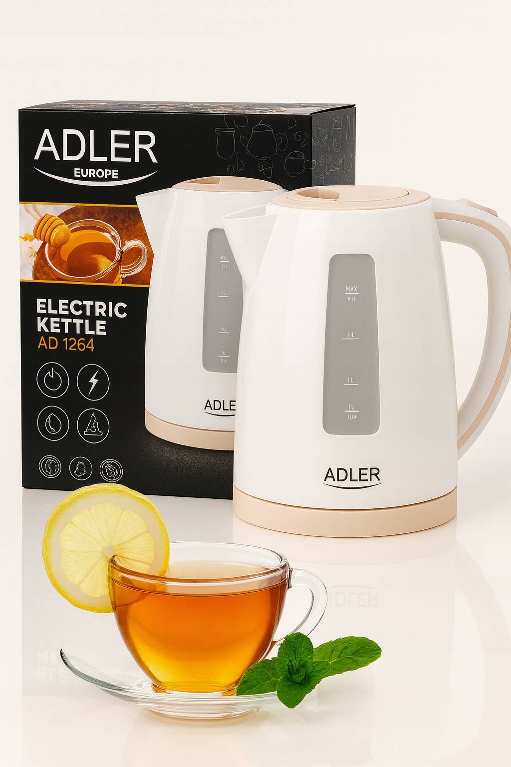 Veekeetja Adler 2200W, 1,7L, valge/ beeź