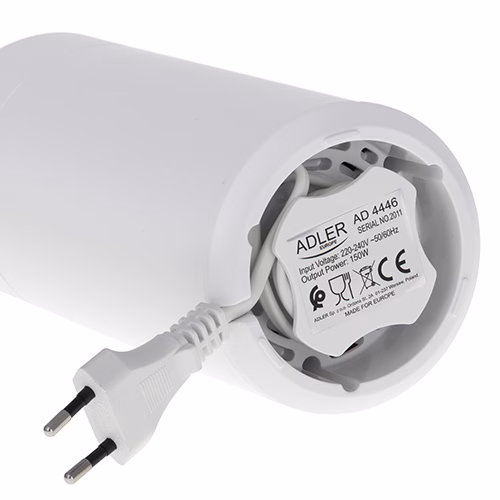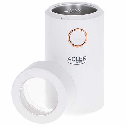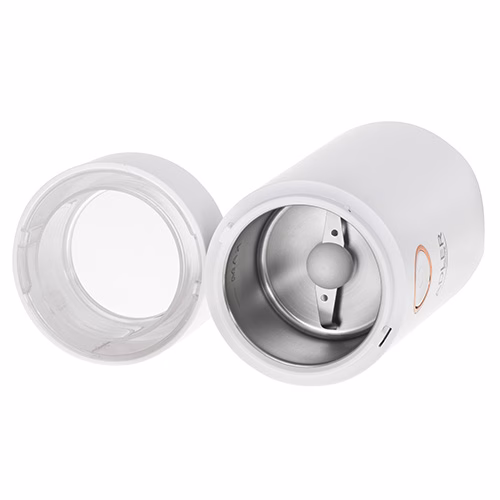 Läbipaistev kaas. Turvalukk. Kiire sisse/välja lülitamine. Lihtsalt kokkupandav kaabel. Mahutavus: kuni 75g. Metallist kohvianum. Toote mõõdud: 9,6 x 9,6 x 19,6 cm. Korpuse materjal: plastik. Värv: valge