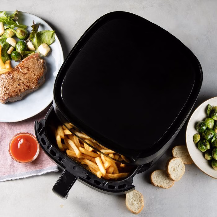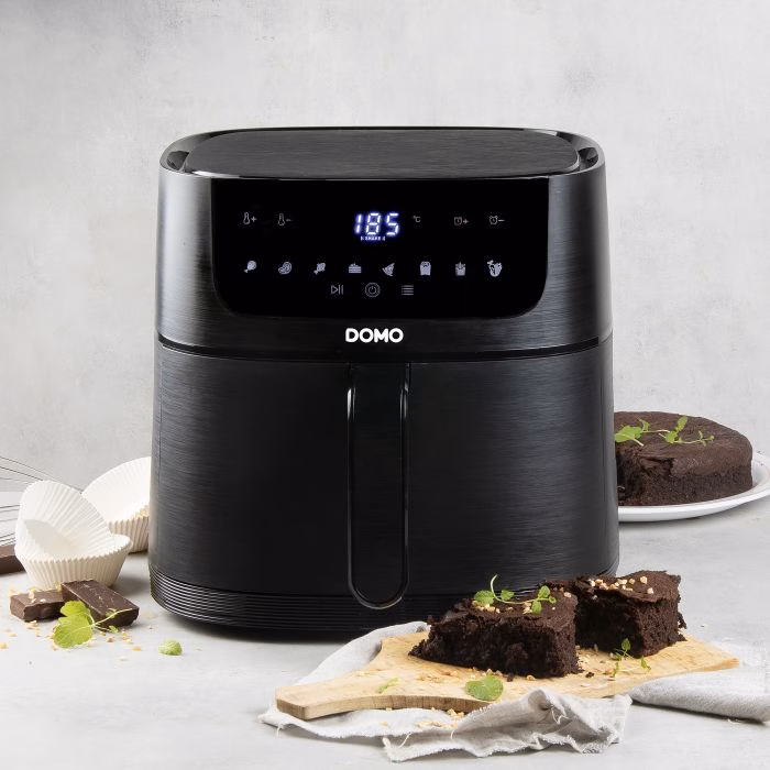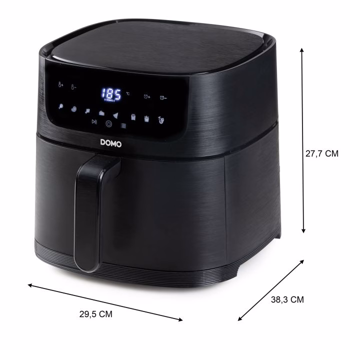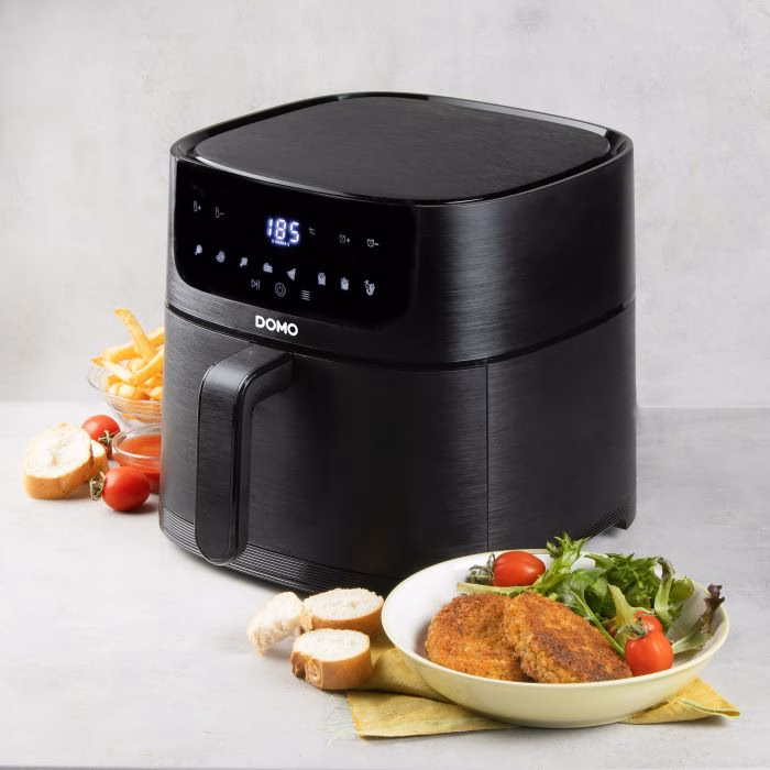 Kuumaõhuga fritüür: kuni 80% vähem rasva kui tavaline praadimine. Kiire õhuringlus kiireks ja madala energiaga praadimiseks. Saab valmistada friikartulit, krokettit, suupisteid, kana, liha, quiche, kooki, jne. Mahutavus: 6L – 1,5 kg. Reguleeritav temperatuur vahemikus 80 ° C kuni 220 ° C. Taimer kuni 60 minutit. 8 automaatprogrammi. Mittenakkuva kattega grillpann. LCD-ekraan. Korpus plastikust. Ülekuumenemiskaitse