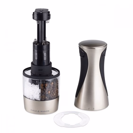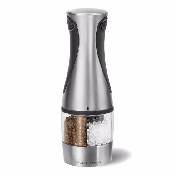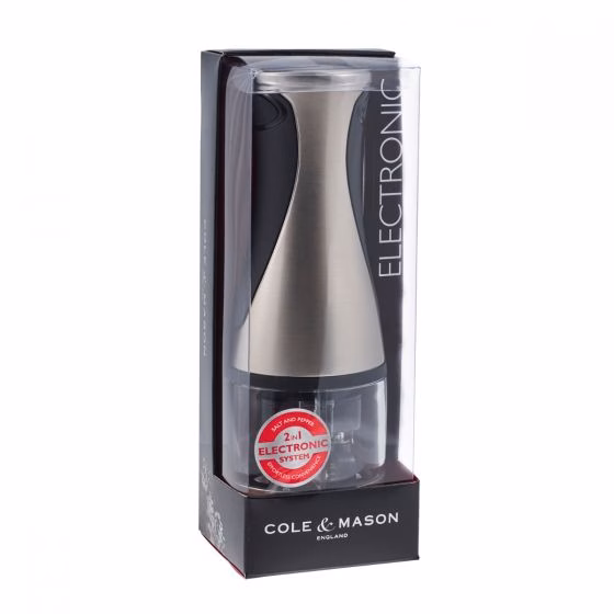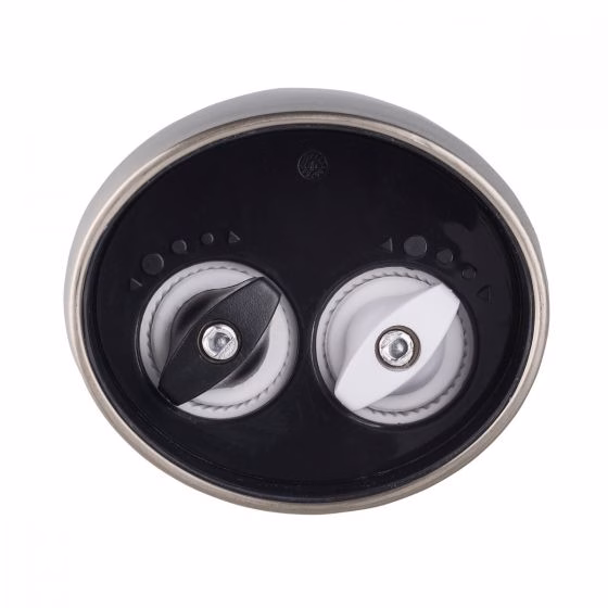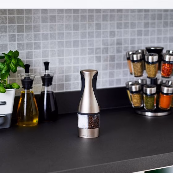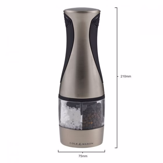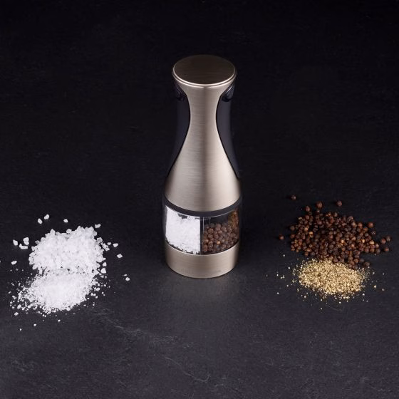 Kaks ühes veski on valmistatud harjatud kroomist. Ideaalne kööki või söögilauale. Töötab ühe nupuvajutusega. Reguleeritav keraamiline jahvatuse mehhanism. Veski töötab 6 x AAA patareidega (ei kuulu komplekti). Mõõdud: kõrgus 210 mm, läbimõõt 75 mm