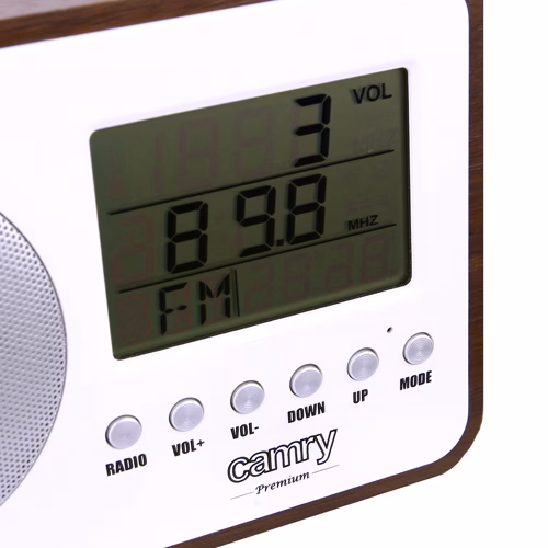 Digitaalne FM raadio. Suur LCD-ekraan. Pööratav teleskoopantenn. Kalender. Termomeeter. Äratuskell. Kell 24- või 12-tunnises vormingus. Toide: 230V. 2 x LR06 (AA) patareid. Mõõdud: 19 x 12 x 6 cm