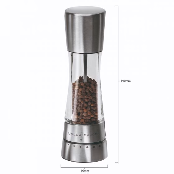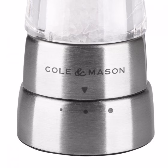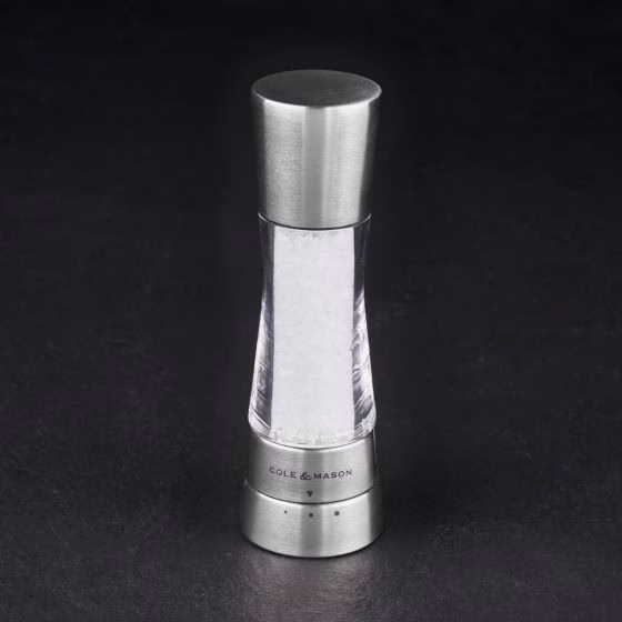 Stiilne soolaveski, mis on valmistatud vastupidavast akrüülist ja roostevabast terasest. 3 ettemääratud jahvatuse taset. Lihtsaks täitmiseks avage ülemine kork. Keraamiline veski mehhanism. Mõõdud: kõrgus 190 mm, läbimõõt 60 mm