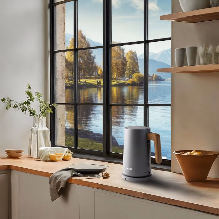Maht 1,7 L. Automaatne väljalülitus. Veetaseme näidik. Valgustatud sisse- ja väljalülitamise nupp. Kaetud küttekeha. 360° alusel pööratav. Värv: antratsiit hall