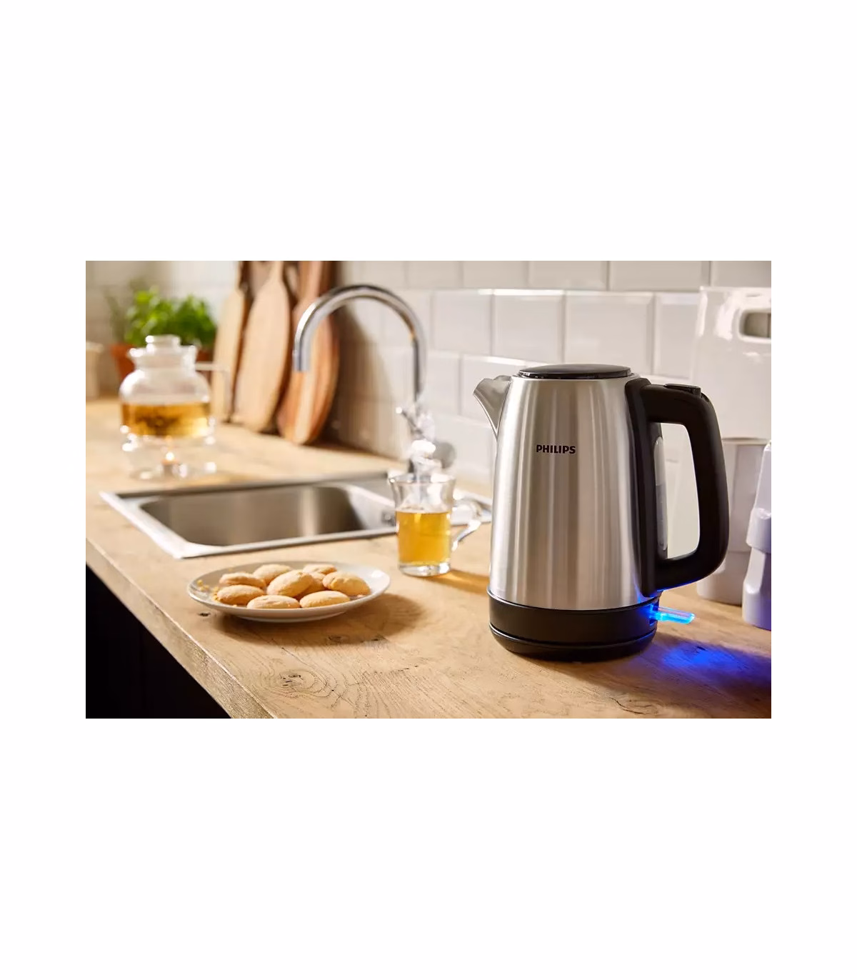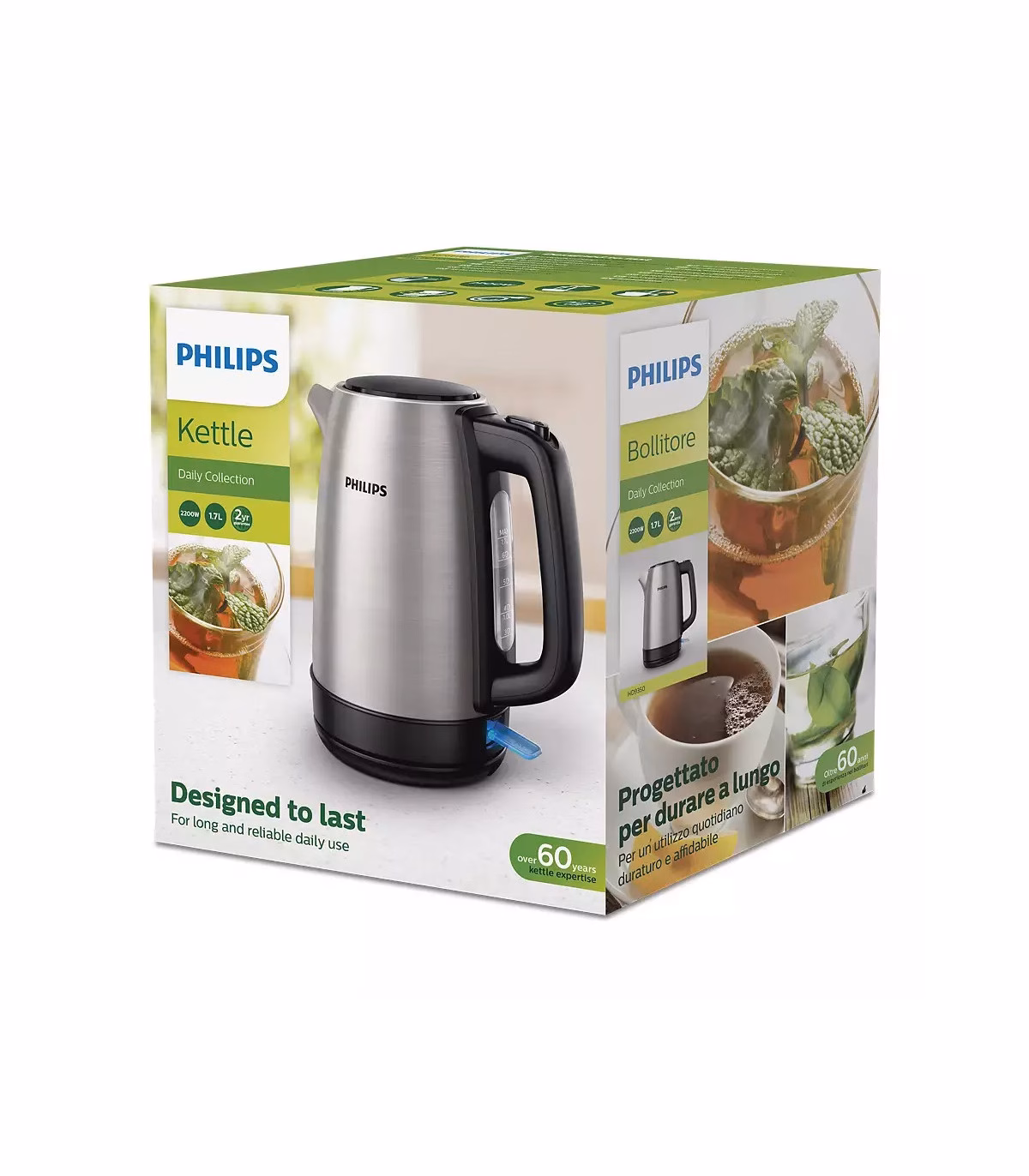 Vastupidav ja ohutust, toiduainetega kasutamiseks sobivast, roostevabast terasest usaldusväärne veekeetja pikaaegseks ja töökindlaks igapäevaseks kasutamiseks. See elegantne ja vastupidav veekeetja on valminud Philipsi 60-aastase usaldusväärsuse ja kogemuste tulemusena.