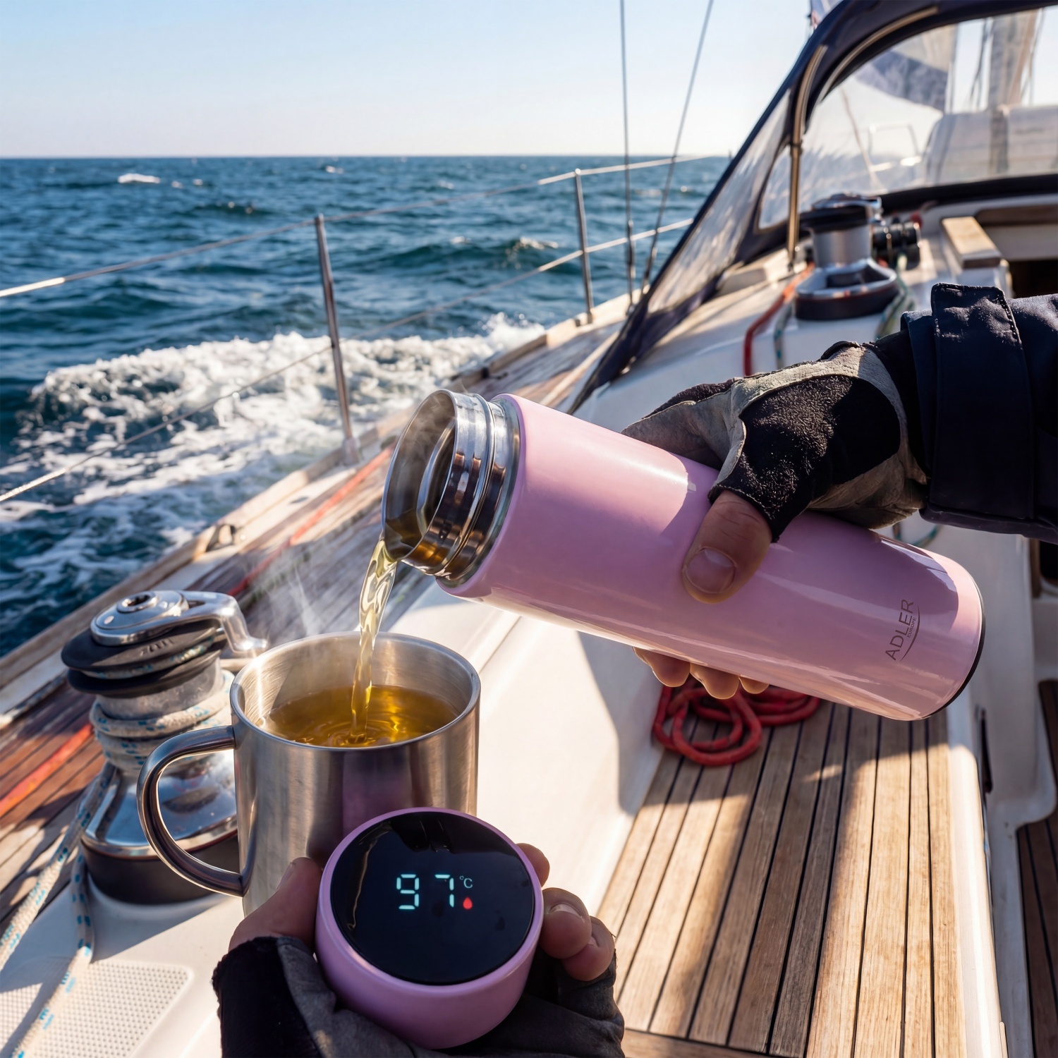 Termos Adler 473ml, digitaalse näidikuga, roosa